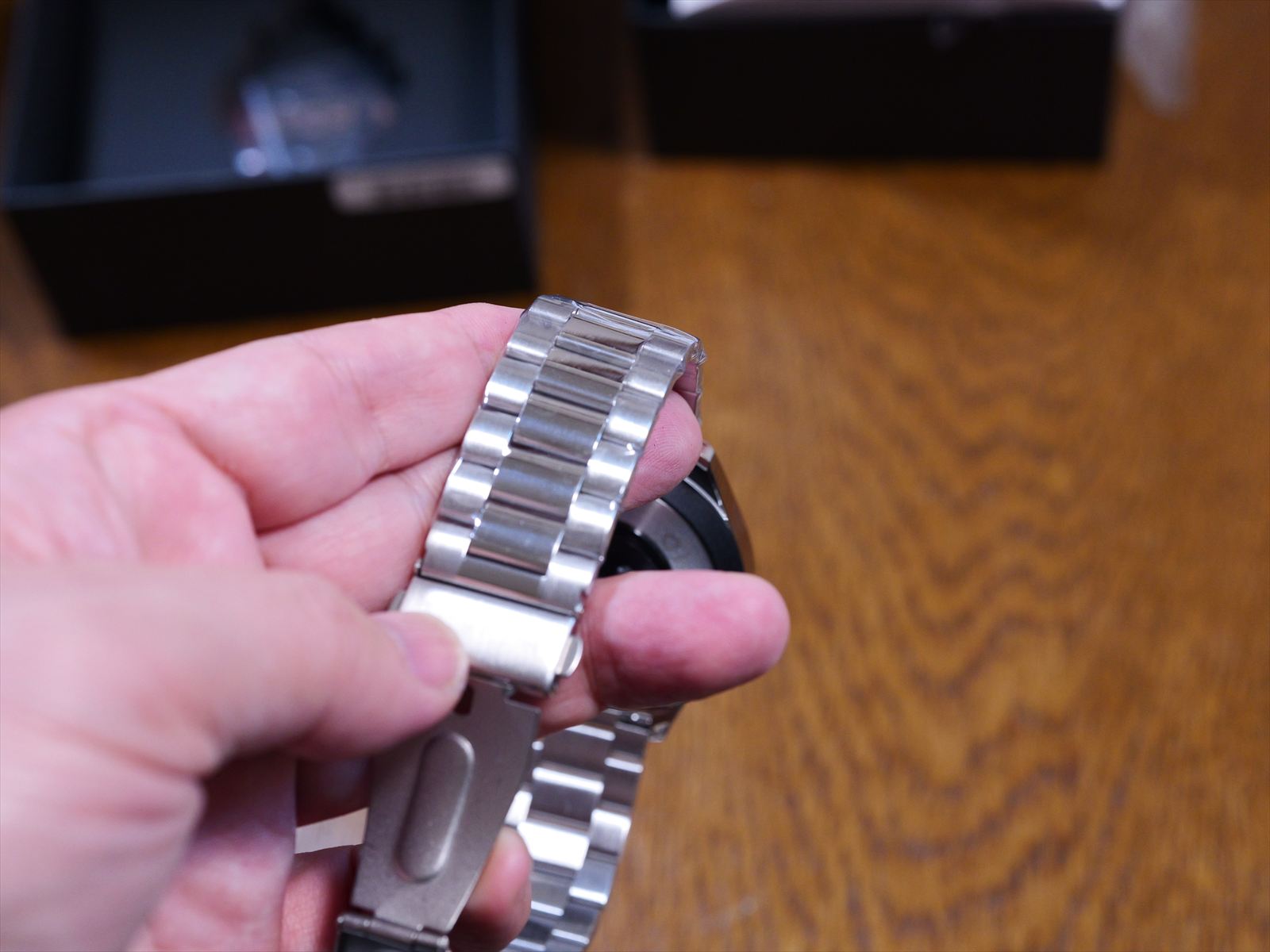 普段は腕時計をつけないため高級時計との比較はできませんが、綺麗な銀色のボディは安っぽさを感じさせません。ディスプレイのガラス面とベゼルの継ぎ目も美しく処理されています。